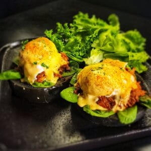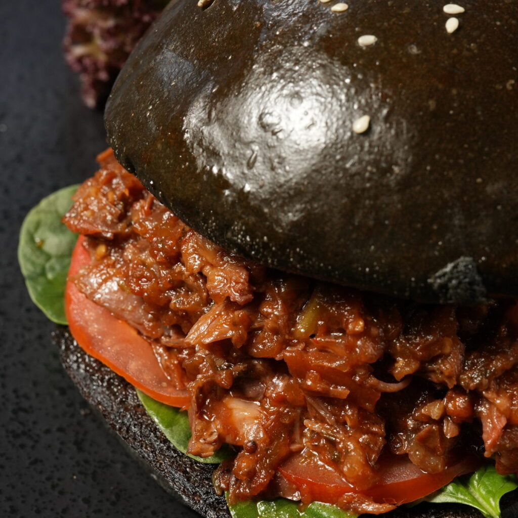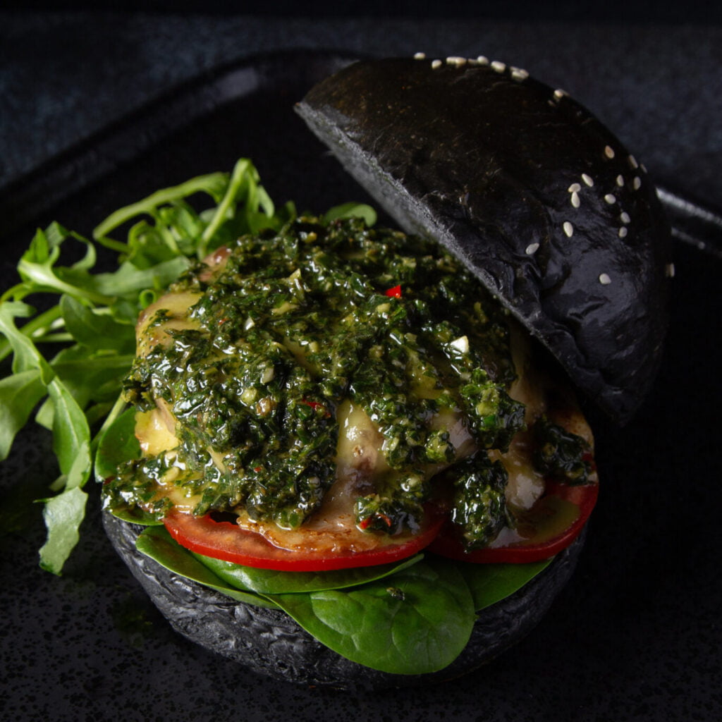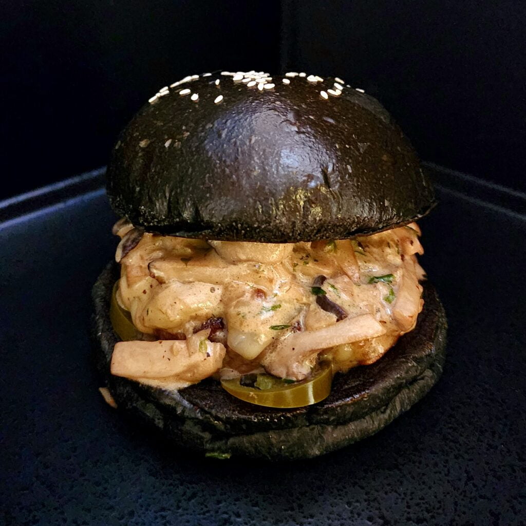 125g Aussie beef patty with Emmenthal Cheese, over baby spinach, jalapenos and a creamy mushroom sauce in Blacksheep Bun