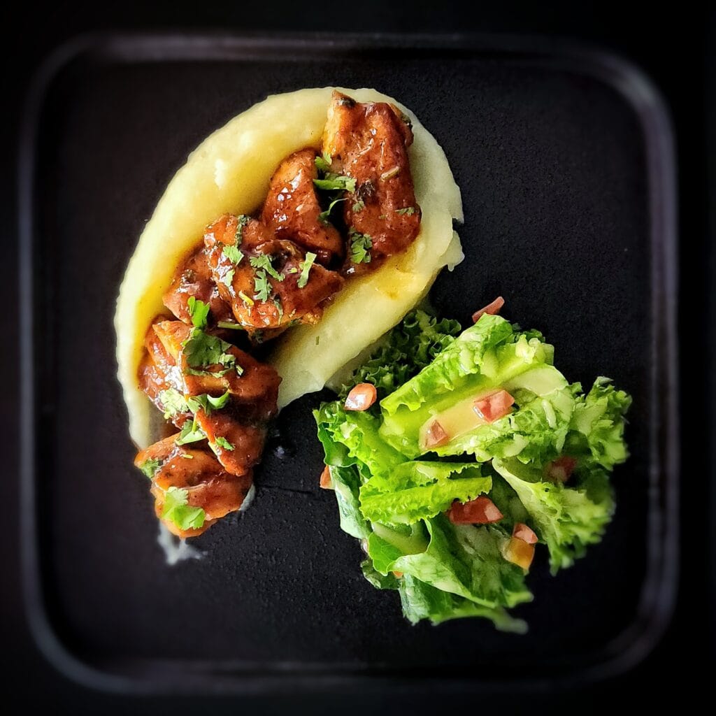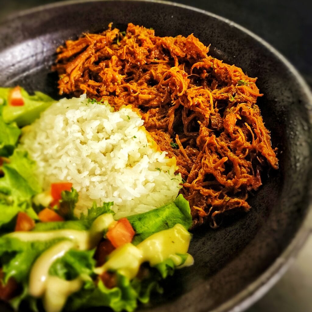 Succulent, slow-braised pulled pork, expertly tossed in a vibrant and zesty habanero BBQ glaze with just the right kick.