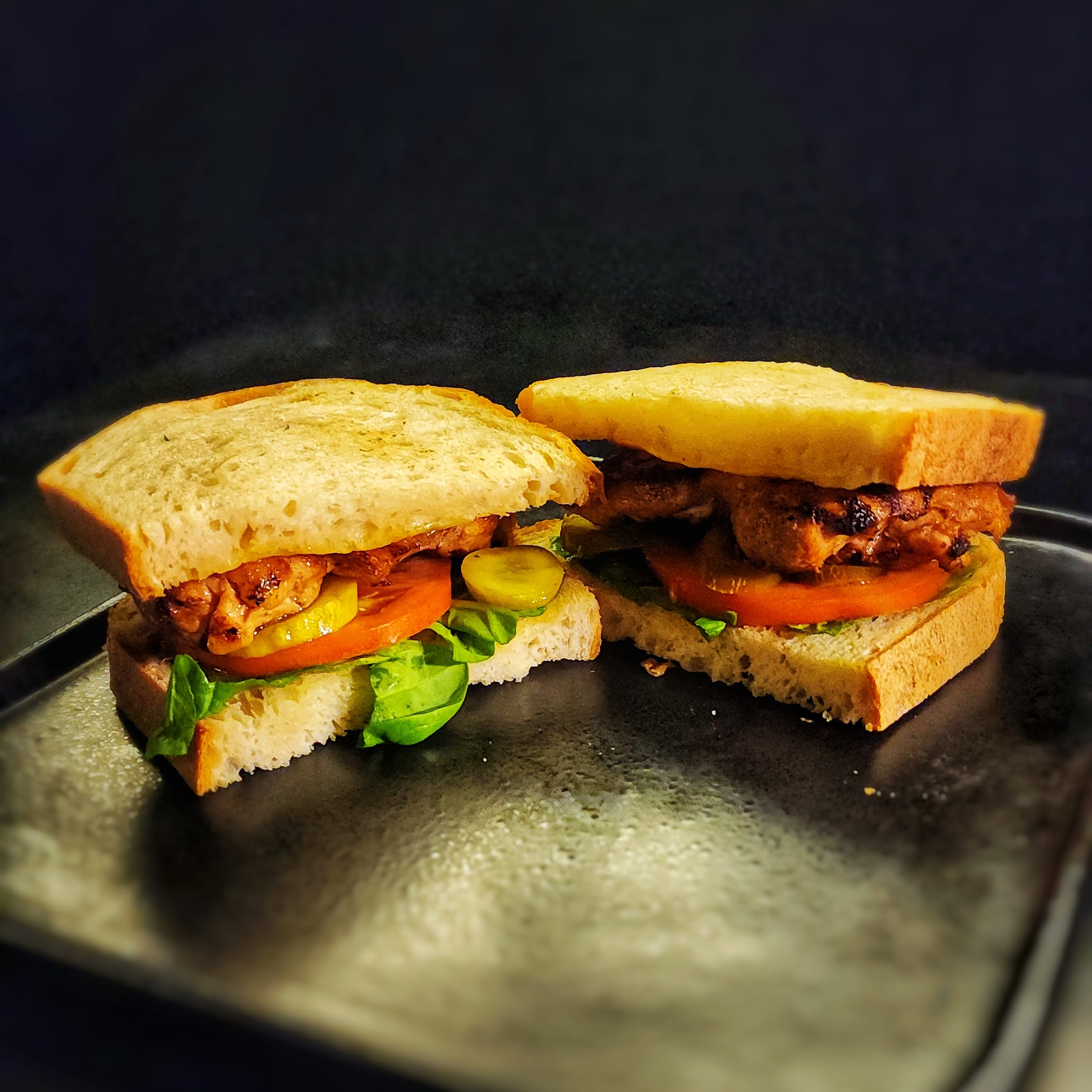Sourdough bread with baby spinach, Sliced ripe tomatoes, Jalapenos, Roasted beef tongue, Mozzarella Cheese and truffle sauce