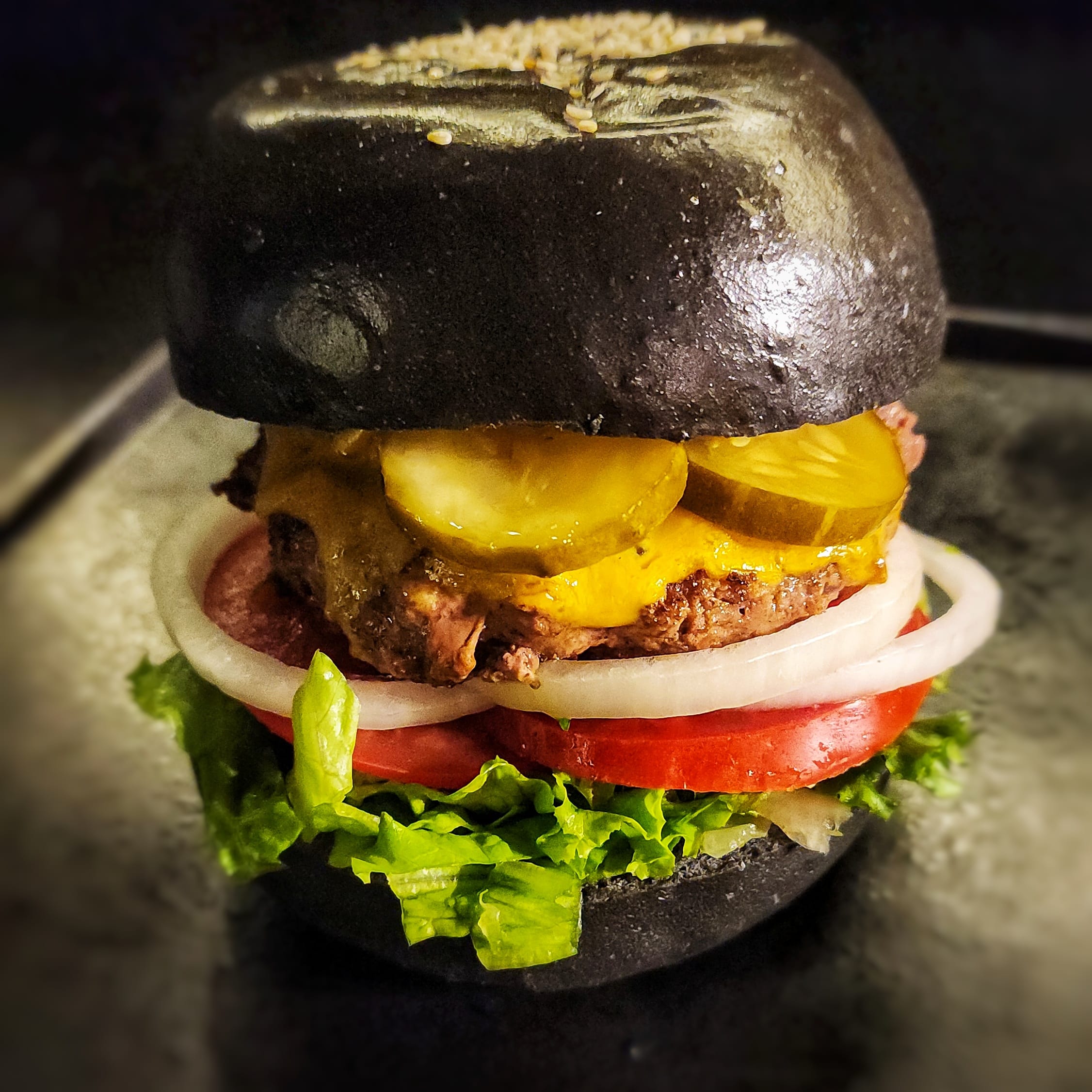 A juicy beef patty, grilled to perfection with lettuce, tomato slices, and pickles, topped with Cheddar Cheese on our Blacksheep bun